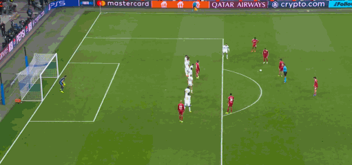 第45+2分钟,又帅又能踢,索博斯洛伊任意球破门,利物浦1-0